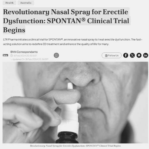 LTR Pharma has been featured in The Australian, for our innovative breakthrough in men’s health – erectile dysfunction nasal spray, Spontan. In the article, non-exective director Dr. Julian Chick highlights the essence of Spontan, emphasising its simple proposition – speed and spontaneity. “As the name suggests, the main factor is this is a product that […]